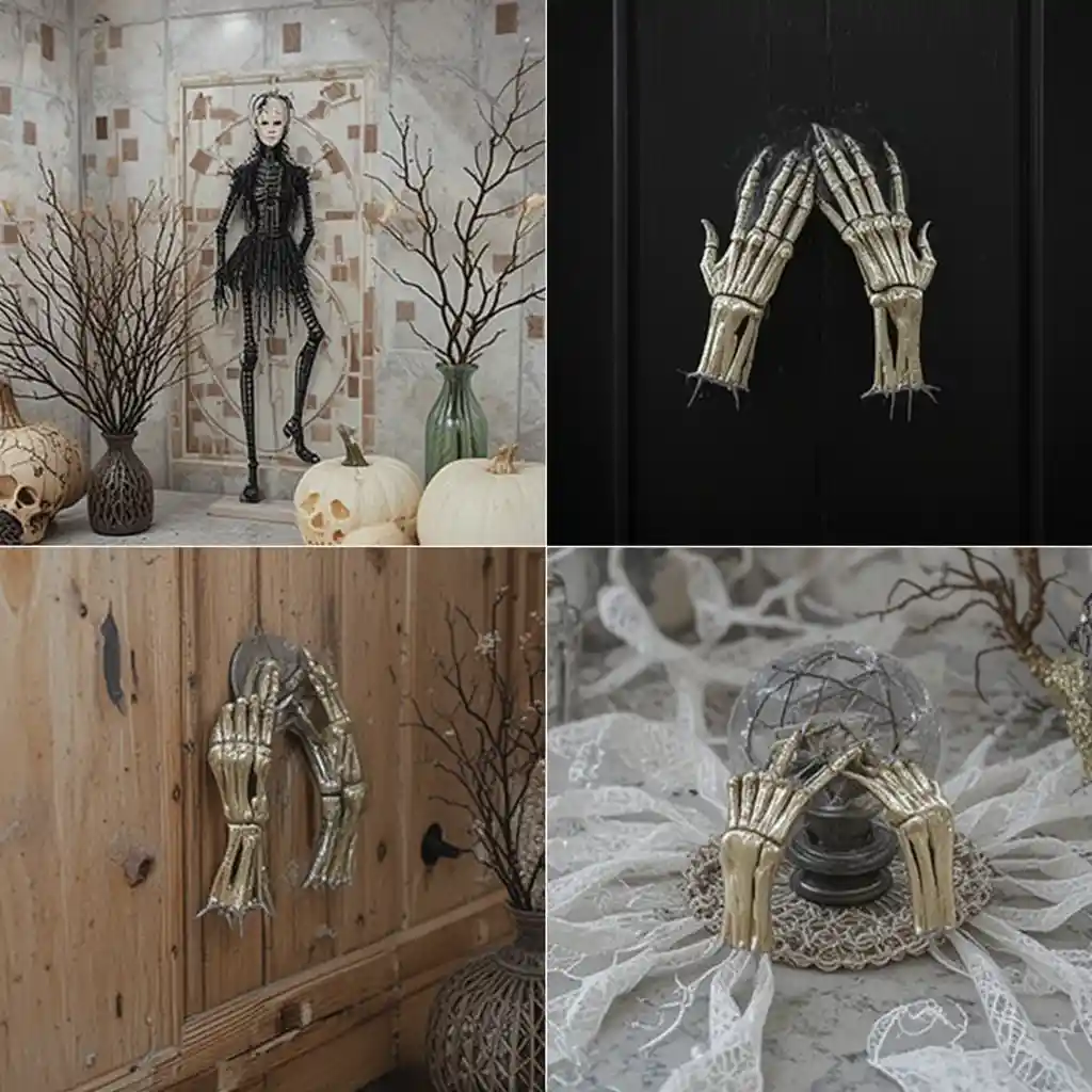Replace regular cabinet knobs or handles with skeleton hand-shaped pulls. This small detail instantly adds a creepy yet stylish twist to your kitchen.