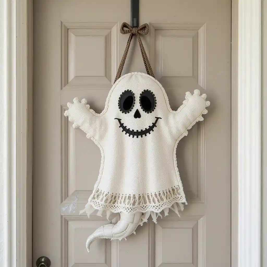A ghost-shaped door hanger with a smiling or spooky face works perfectly for both kids and adults. Fabric or wooden versions look equally festive. Halloween Door Hangers