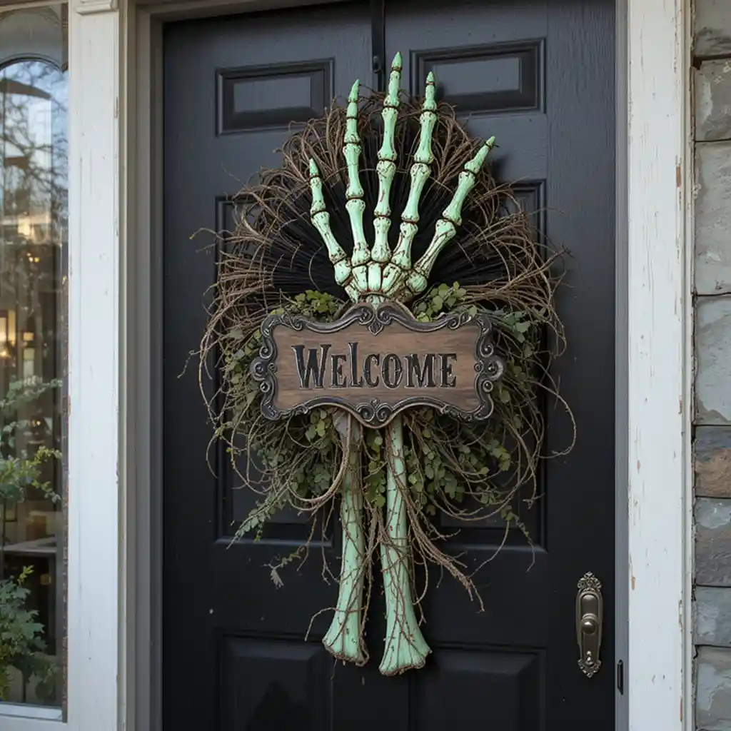 3. Skeleton Hand Welcome Sign