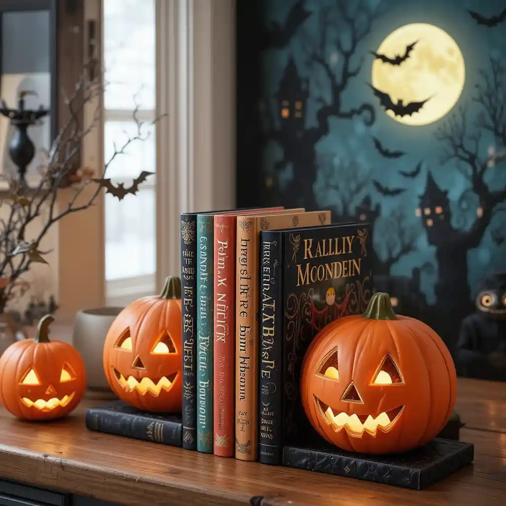 Use jack-o’-lantern-shaped bookends to keep spooky stories neatly in place.