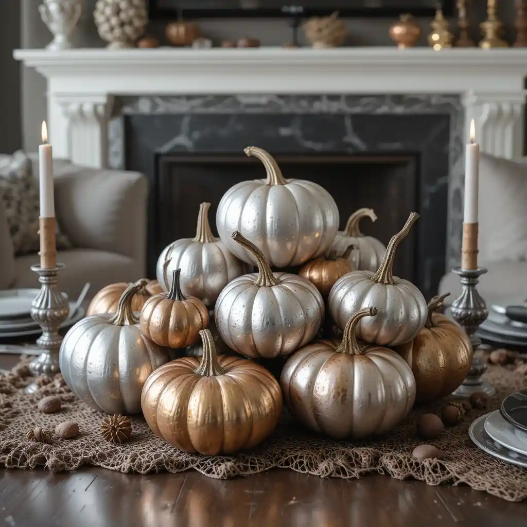 Mix silver, copper, and gold-painted pumpkins together for a shimmering, modern Halloween table look.
