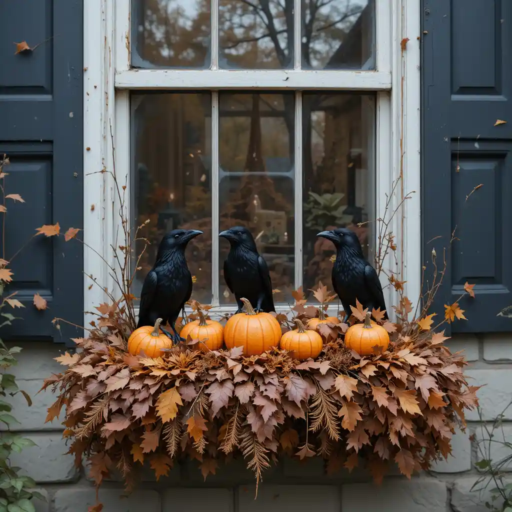 Fill outdoor window boxes with dried leaves, small pumpkins, and black ravens for a chilling yet beautiful display.