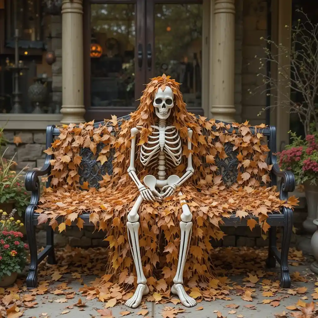 Seat a skeleton on your outdoor bench and drape it with piles of autumn leaves as if it has been sitting there for centuries.