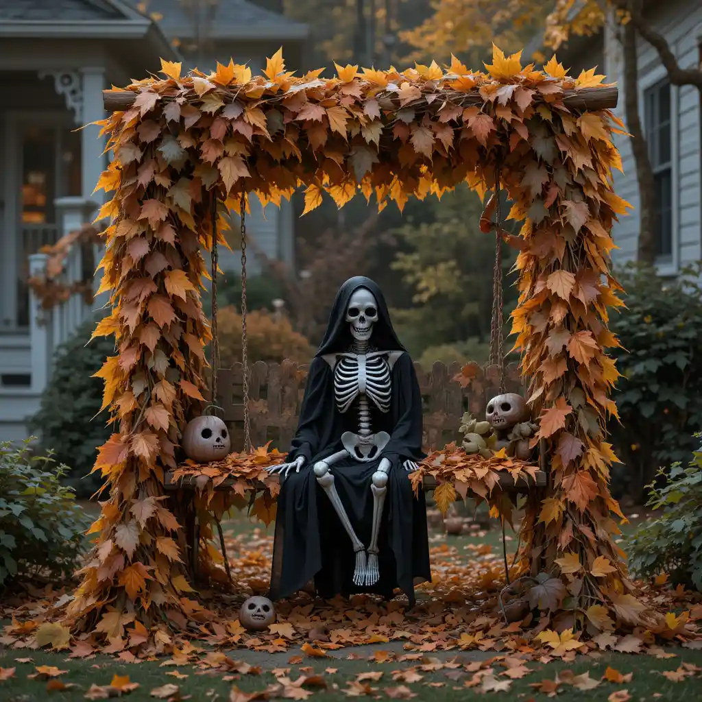 If you have a swing, drape it with leaves and perch a skeleton or ghost figure for a playful yet eerie look.