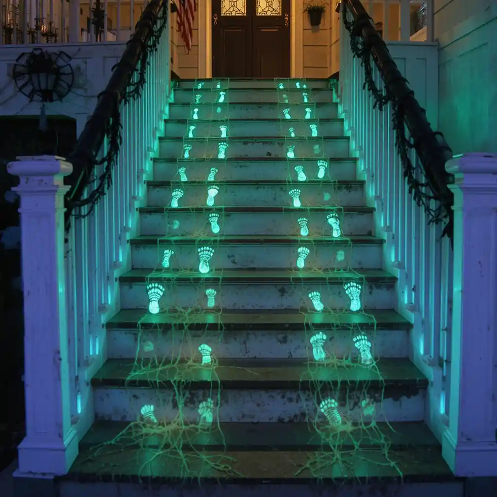 Apply removable glow-in-the-dark footprint decals up or down the stairs to make it look like something spooky just walked through.