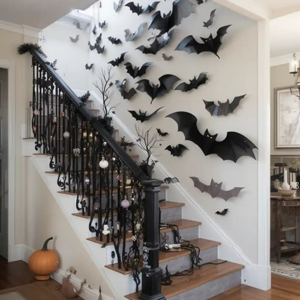 Attach black paper bats in a flying pattern along the wall or railing to make it look like a swarm has taken over your staircase.