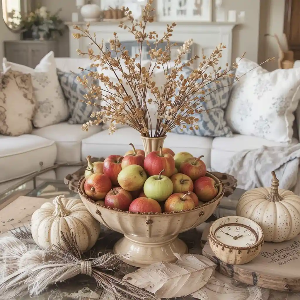 Fill a ceramic or wooden bowl with faux red or green apples. This idea is simple but immediately brings in a harvest feel.