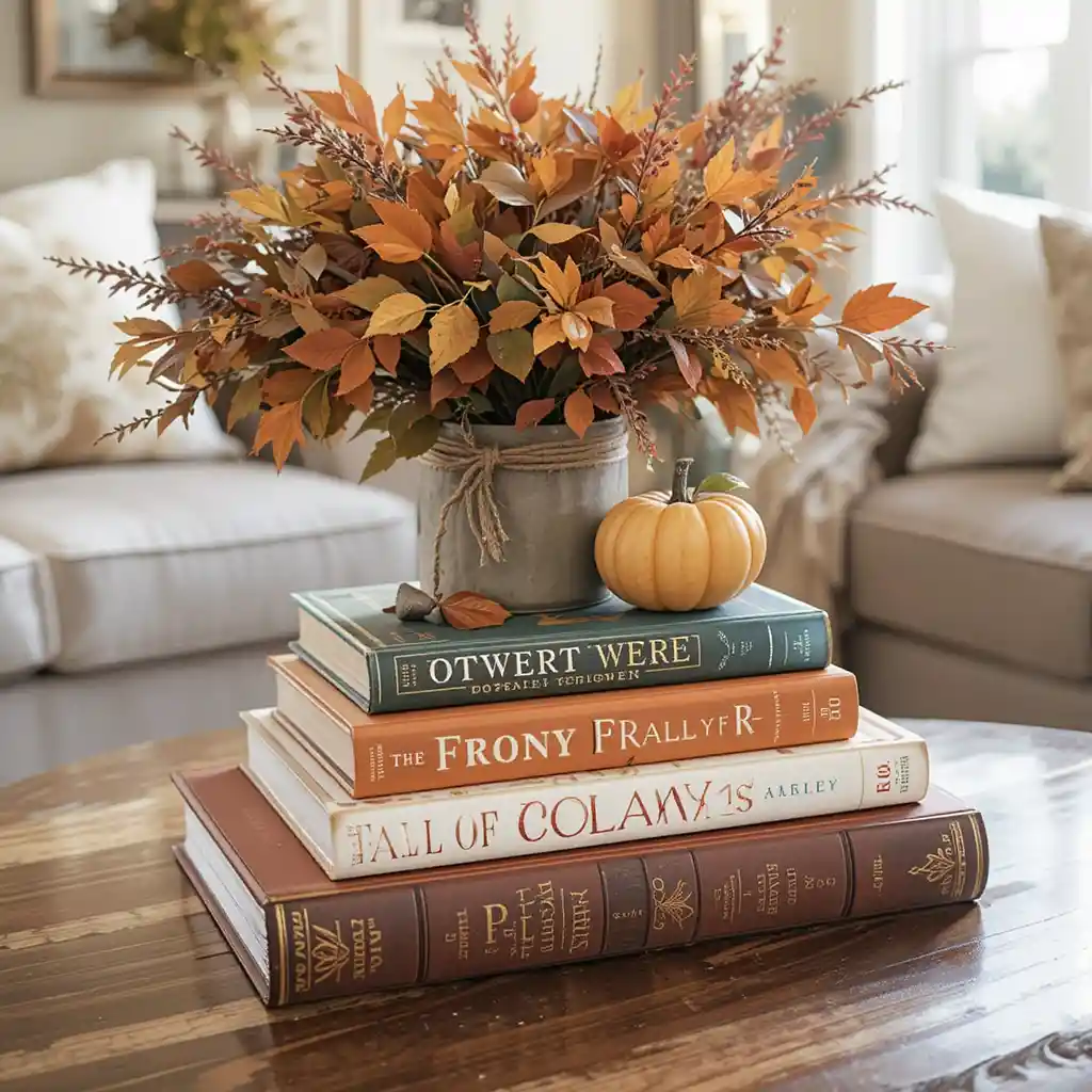 Layer two or three coffee table books in seasonal colors. Top them with a small decorative object like a candle, faux apple, or mini pumpkin.