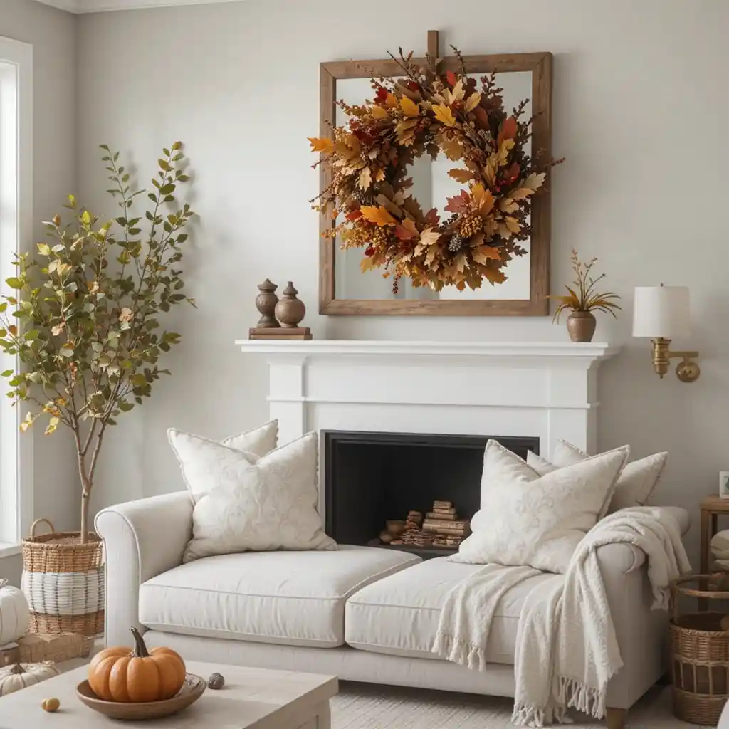 Hang a seasonal wreath made of leaves, berries, and twigs above a mirror or on an interior door for a traditional autumn statement.