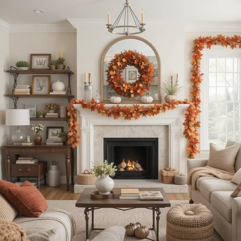 String artificial maple or oak leaf garlands across mantels, mirrors, or shelves for a vibrant burst of autumn color without any mess.
