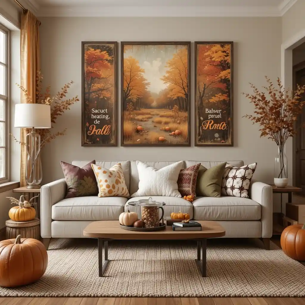 Swap your wall art for seasonal quotes, autumn landscapes, or abstract art in warm tones to give your space a refreshing update.