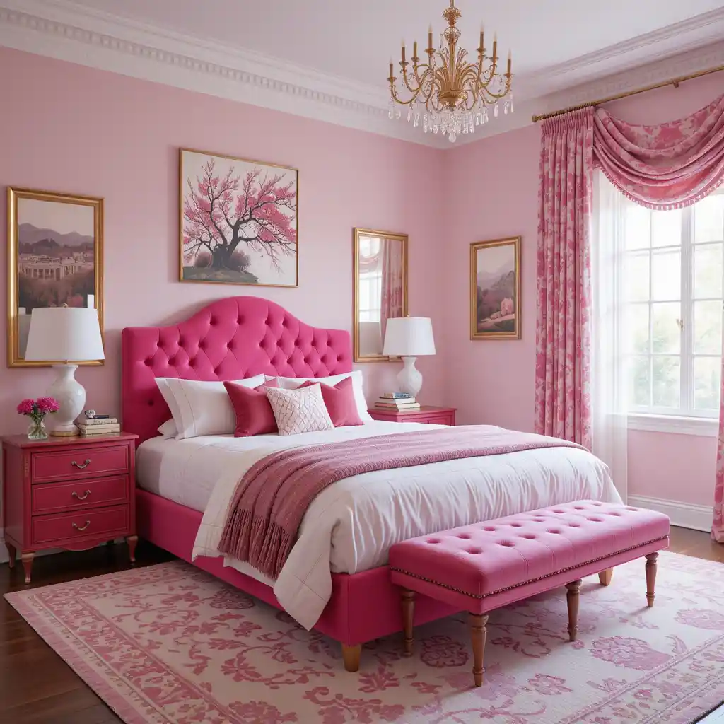 Add gold light fixtures, picture frames, or drawer pulls for a touch of elegance that complements hot pink beautifully. Hot Pink Bedroom Ideas