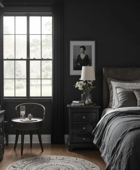Jet black paint colors are bold, dramatic, and irresistibly stylish. Whether you choose a pure black or a soft charcoal tone, these shades add luxury, depth, and a sense of modern elegance to any room.