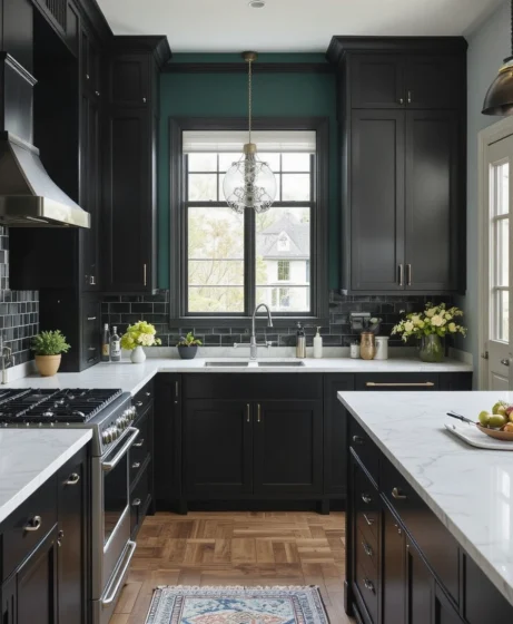 Use black on accent walls, cabinetry, or trims to define spaces.