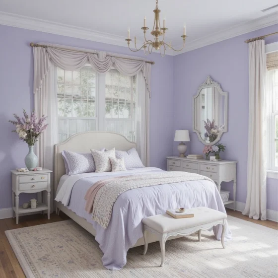 Perfect for bedrooms, offering soft warmth and gentle pastel charm Lavender Paint Colors.