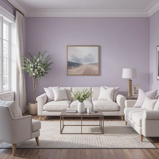 A soft lavender-pink blend ideal for nurseries or kids’ rooms Lavender Paint Colors.
