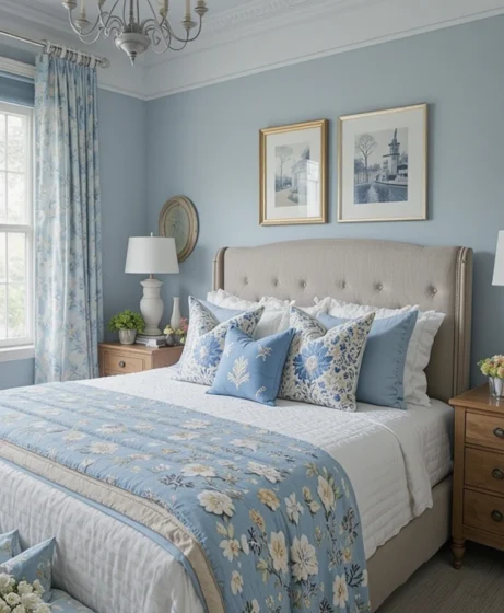 Layering your bedding with multiple shades of light blue creates depth and softness. Add a textured throw or patterned pillows to complete the look. This keeps the room cozy while maintaining the calming effect of the blue palette.