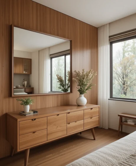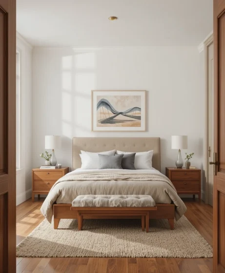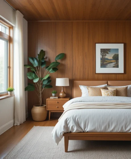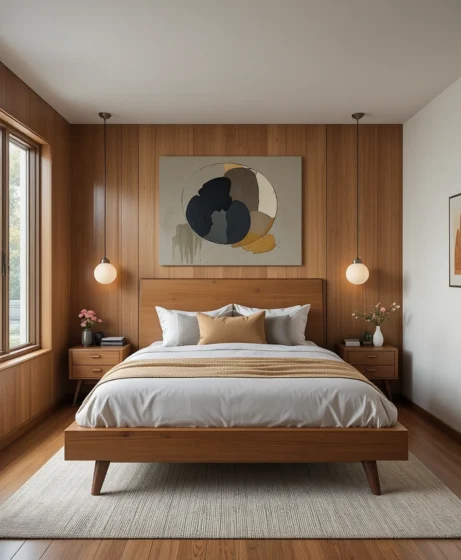 By combining clean lines, warm wood tones, and thoughtful decor choices, you can transform your bedroom into a timeless retreat.