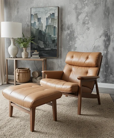 A sculptural lounge chair paired with a matching ottoman adds comfort and sophistication. Look for molded wood frames and leather upholstery for an authentic touch. This piece works beautifully in living rooms or reading corners.