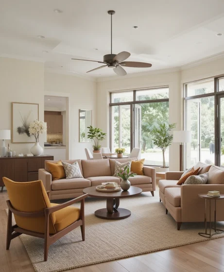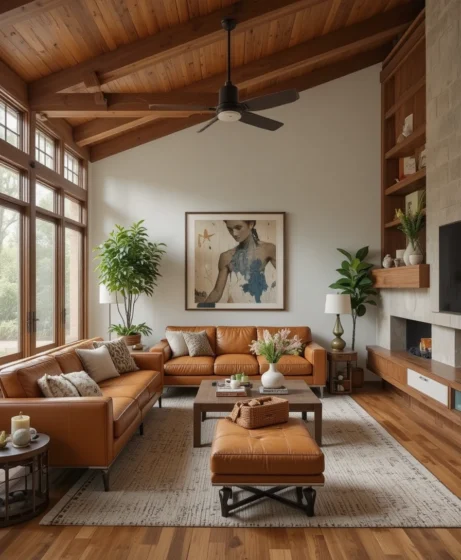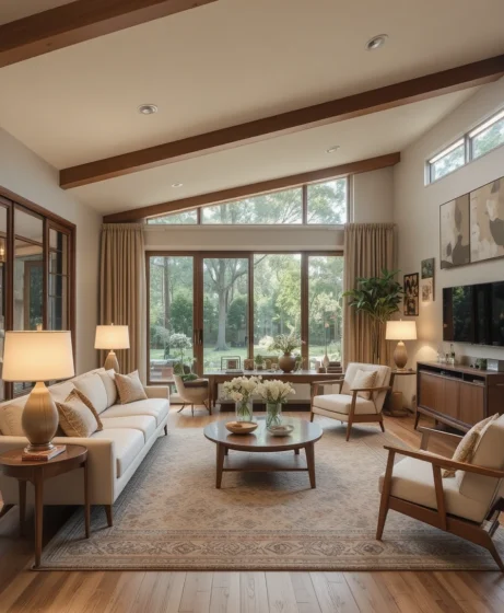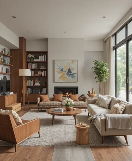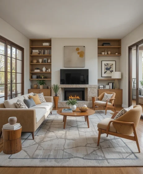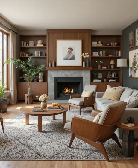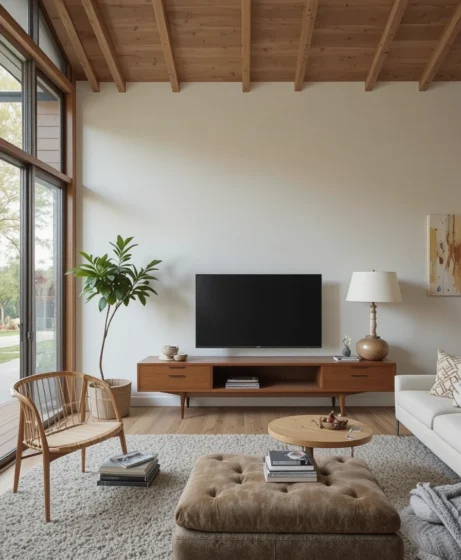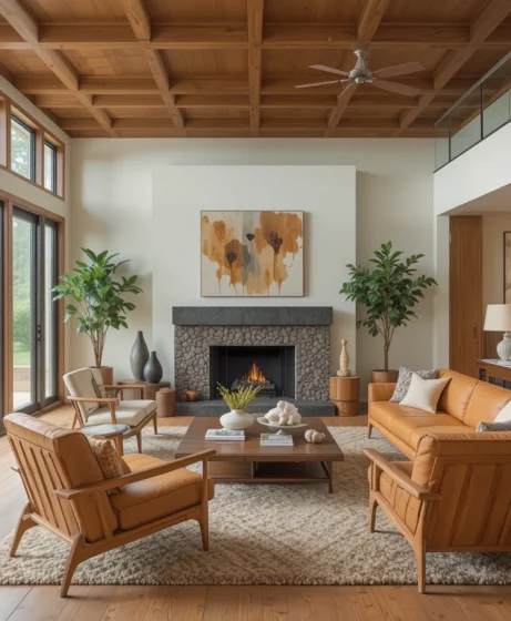 The Mid Century Modern living room remains a favorite because it combines comfort with timeless design. Its clean lines fit seamlessly into both traditional and contemporary homes. The warm wood tones and simple forms create a welcoming atmosphere that feels stylish yet approachable.