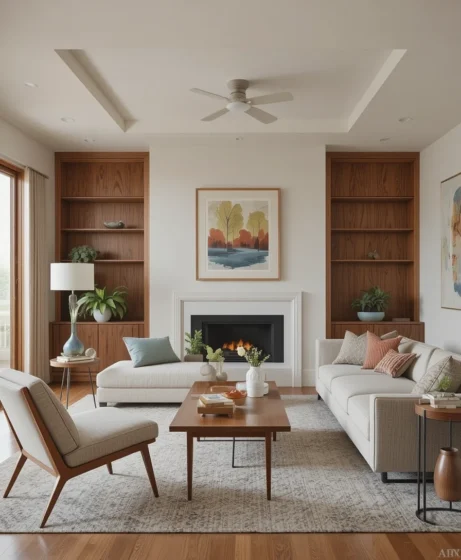 A Mid Century Modern living room blends simplicity, functionality, and timeless beauty.