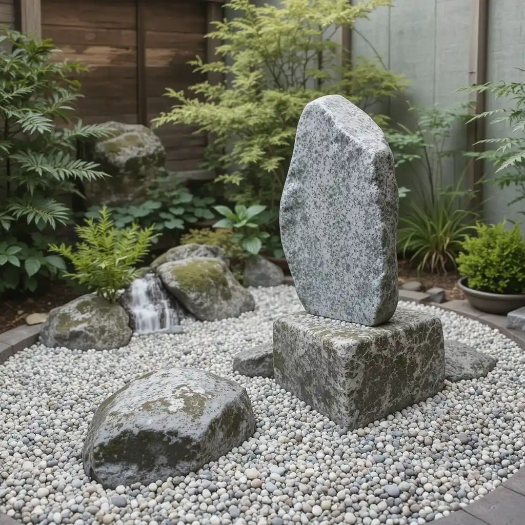 Use flat stones on low risers to mimic floating platforms. Place a bonsai or lantern on top to emphasize simplicity and height balance.