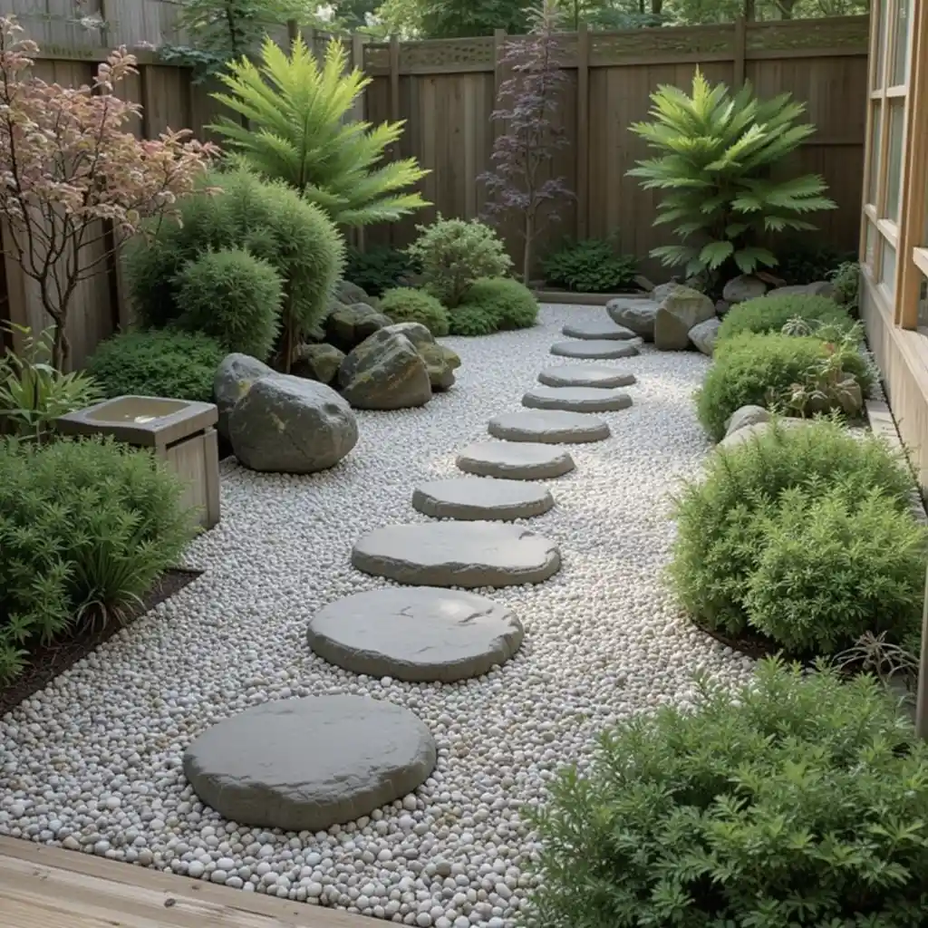 Use stepping stones laid over fine gravel to define a peaceful walking path. Even in small yards, this design creates flow and movement. Mini Japanese Garden Ideas