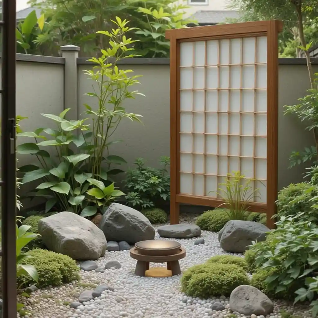 Add a miniature Shoji screen to act as a backdrop. It introduces traditional Japanese architecture and makes your garden space feel private and purposeful. Mini Japanese Garden Ideas
