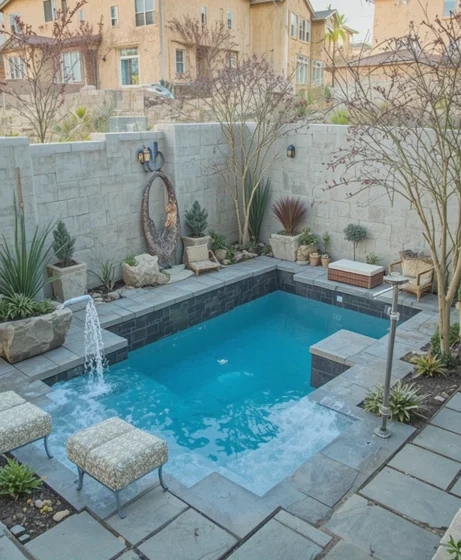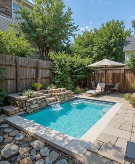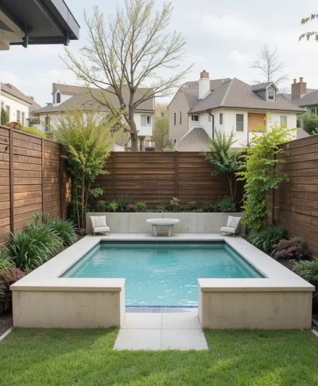 Mini pools work beautifully in enclosed courtyards. Surrounded by walls, plants, or privacy screens, this design feels private and peaceful, creating a personal outdoor escape.