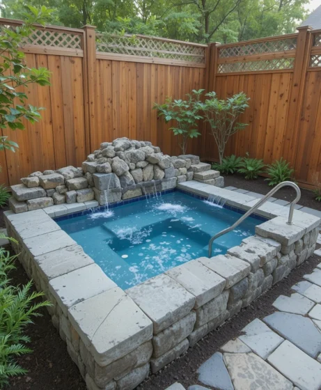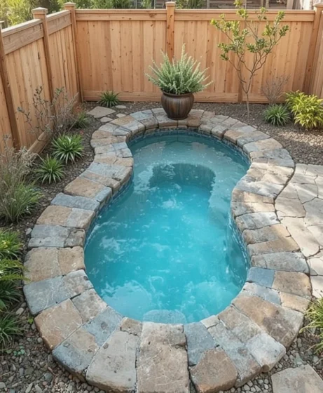 Stone finishes add texture and a high-end look to a mini pool. This idea blends well with nature-inspired backyards and creates a timeless, elegant appearance.
