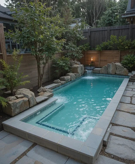 A spa-style mini pool focuses on relaxation with jets and warm water. This design blends the benefits of a hot tub and pool into one compact feature.