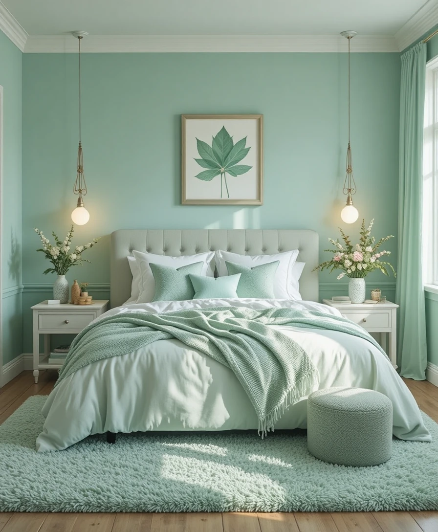 Mint green has a special way of turning any bedroom into a calming and refreshing retreat.