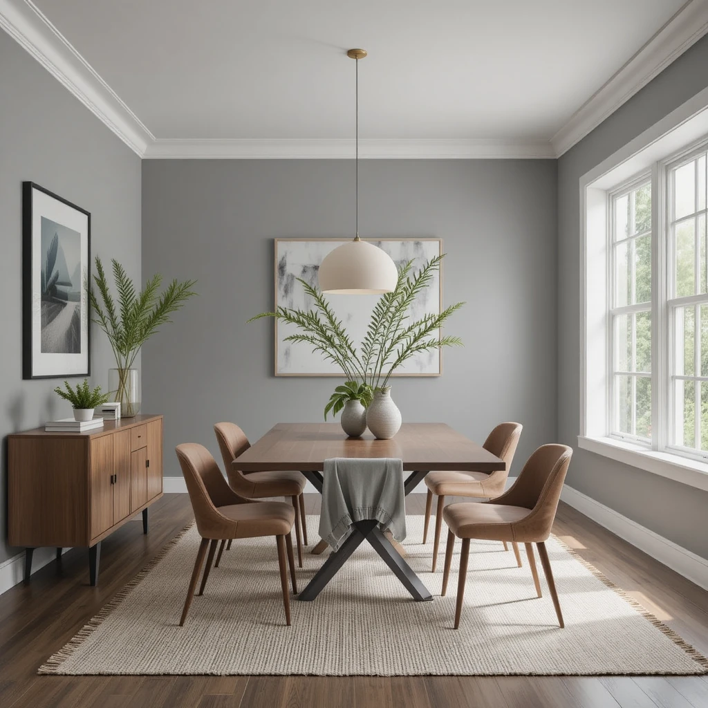 A warm gray that blends with almost any decor. Perfect for open-plan dining spaces and modern interiors.