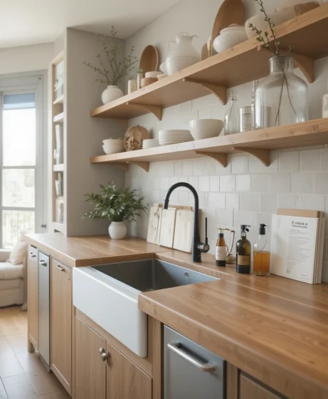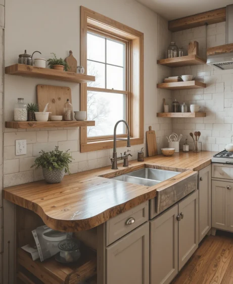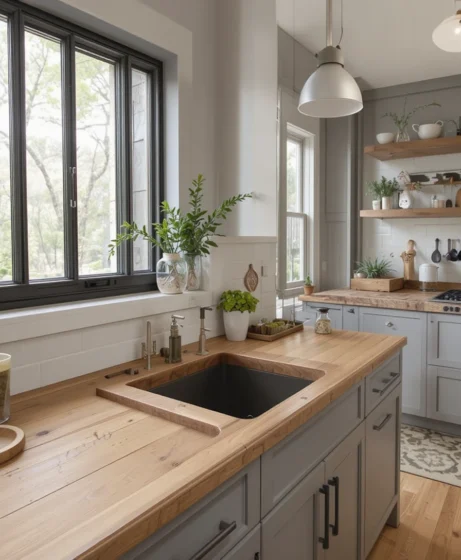 6. Butcher-Block Oak Countertops for Everyday Function