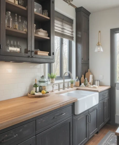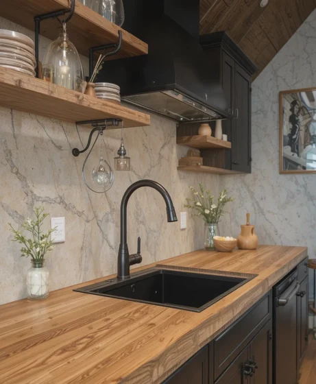 13. Oak Countertops Paired With Black Accents
