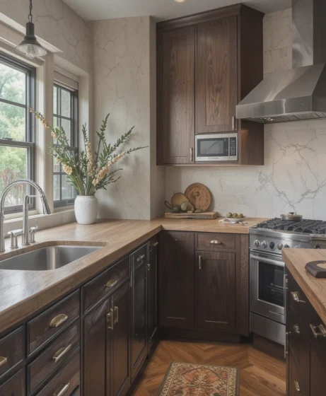 5. Dark-Stain Oak Countertops for a Lux Modern Look
