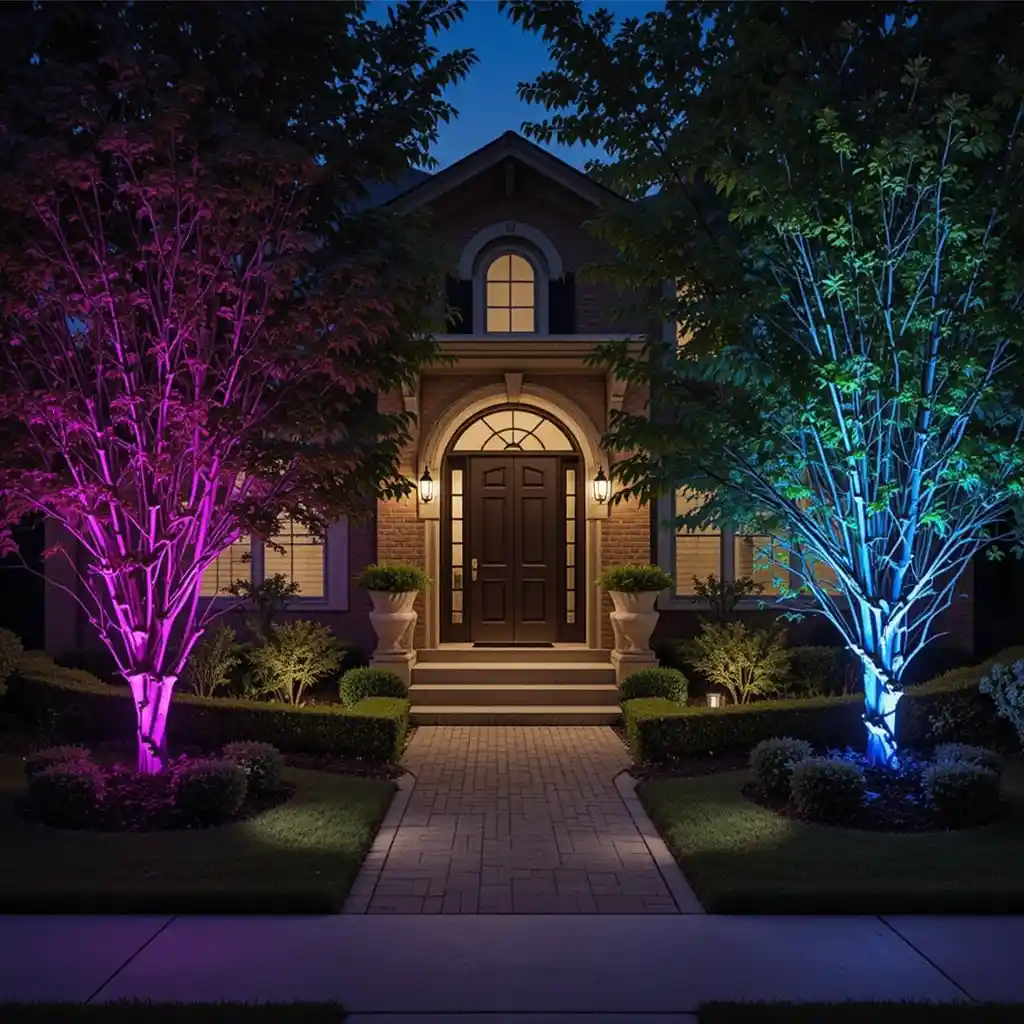 Add RGB uplights to trees or front walls for holidays or events. Change the color to match seasons or special occasions for a fun, flexible option.