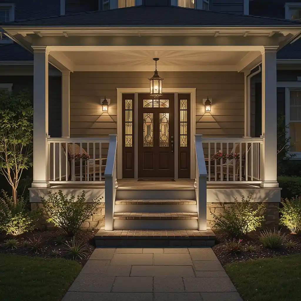 Use under-rail lighting on porch or balcony railings for a modern glow. It outlines the space clearly without being too bright or bulky.