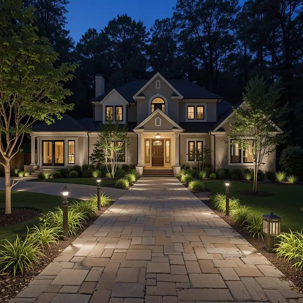 Install in-ground driveway lights or bollard fixtures along the perimeter. This keeps cars safely on track and enhances your home’s outline.