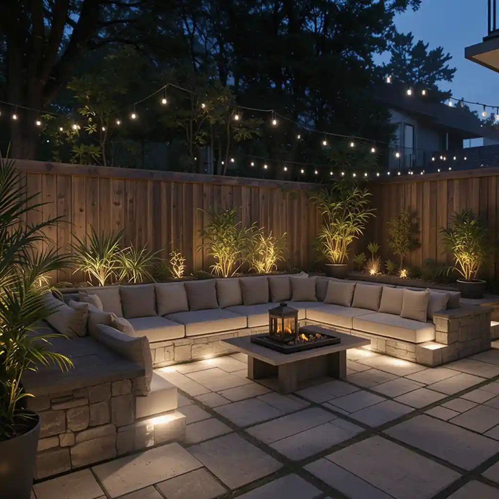 Install waterproof LED strips under benches, seating walls, or railings to add sleek, modern lighting without bulky fixtures.