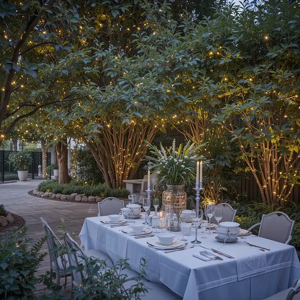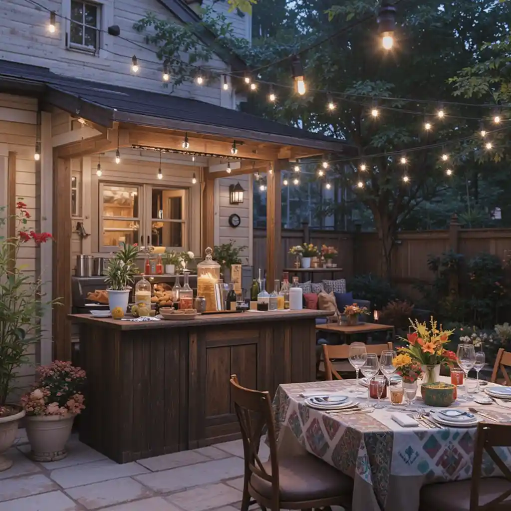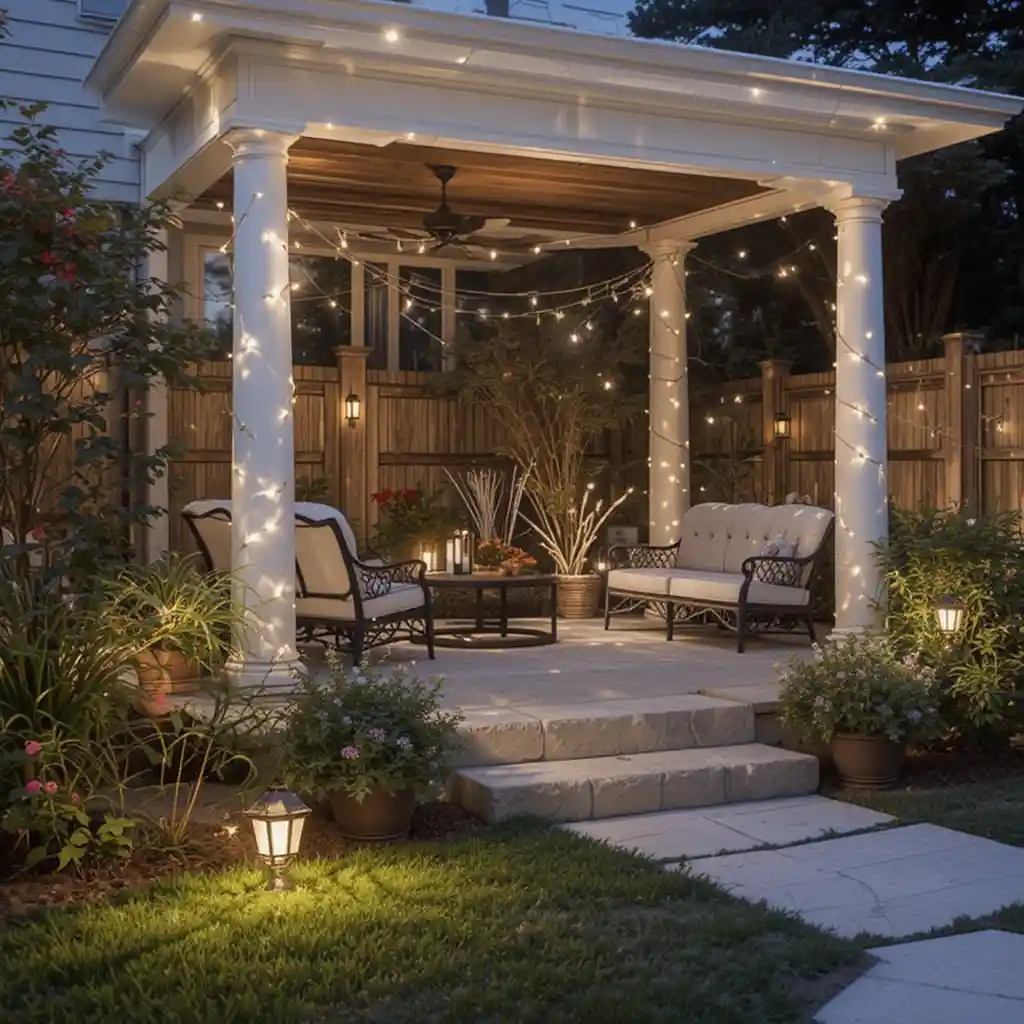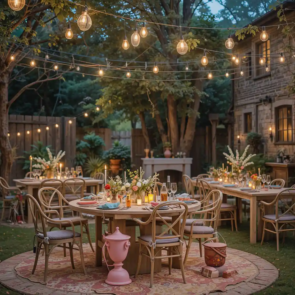 Drape string lights above your patio or backyard to create a canopy of warm light. They instantly add charm and give your space a celebratory vibe.