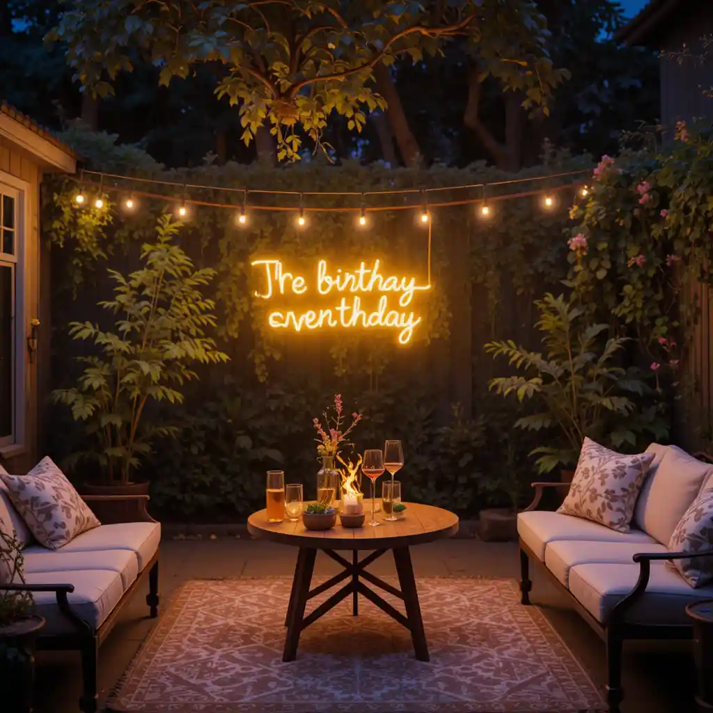 Add a custom or themed neon sign with fun phrases or shapes. It’s trendy and makes for a fantastic photo-op. Outdoor Lighting Ideas