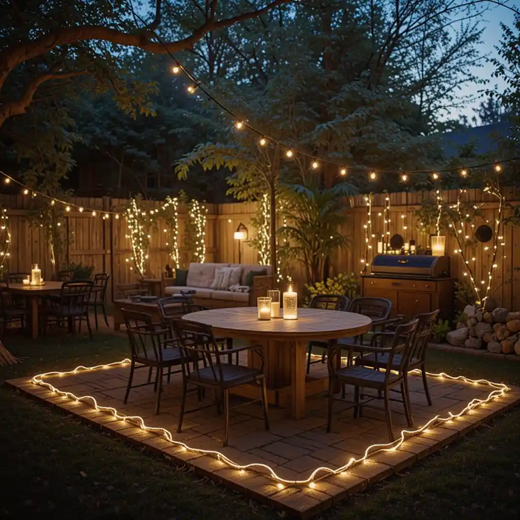 7. Rope Lights Around Tables or Edges