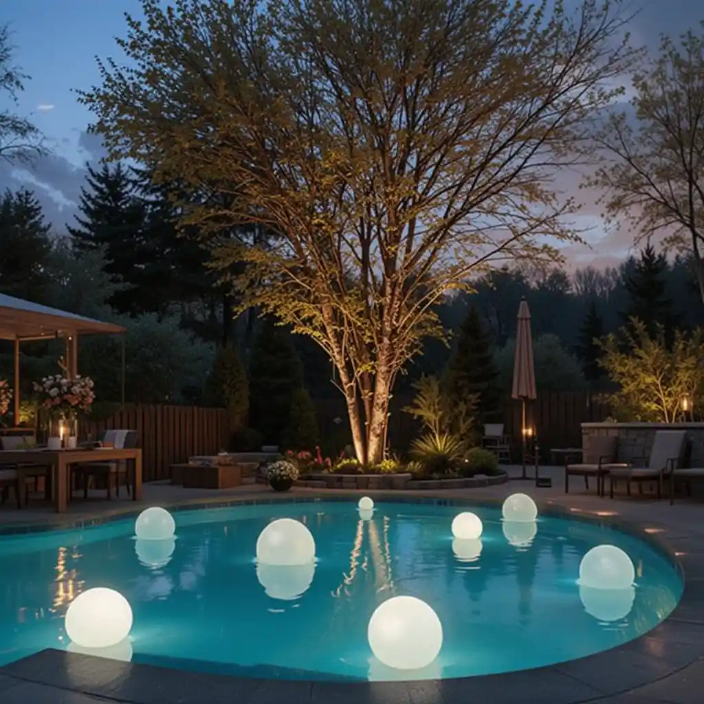 8. Floating Pool Lights for Wow Factor