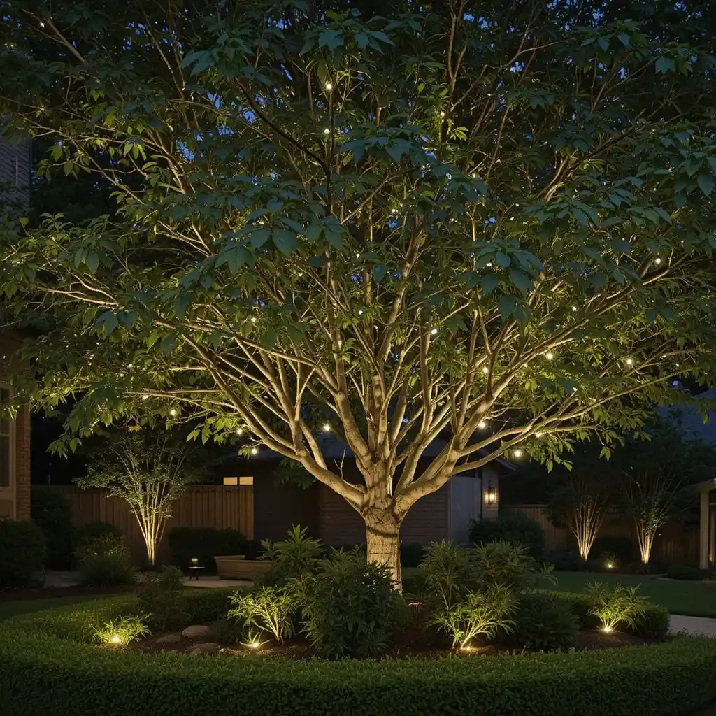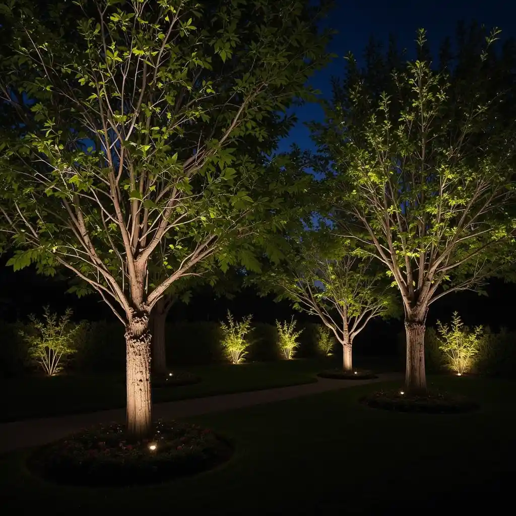 Trees bring structure, height, and beauty to your outdoor space — and with the right lighting, they become breathtaking focal points even after the sun goes down.