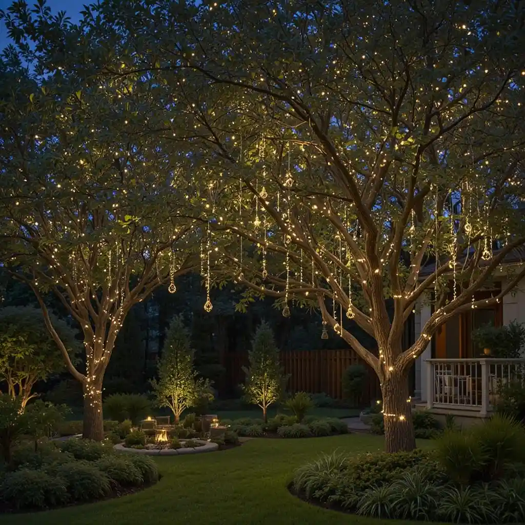 Hang ornaments or globe lights that glow or twinkle during holidays or parties. These bring fun and festive detail to your tree lighting. Outdoor Lighting Ideas