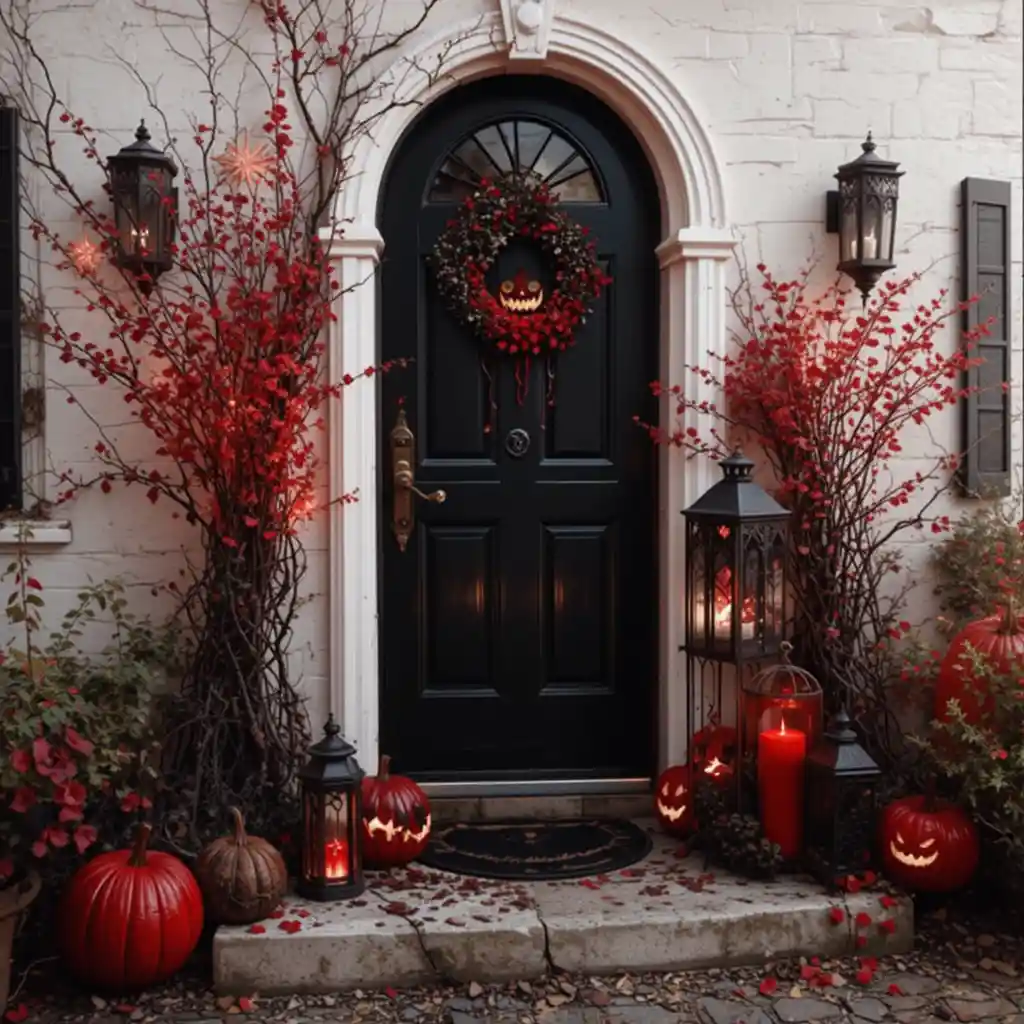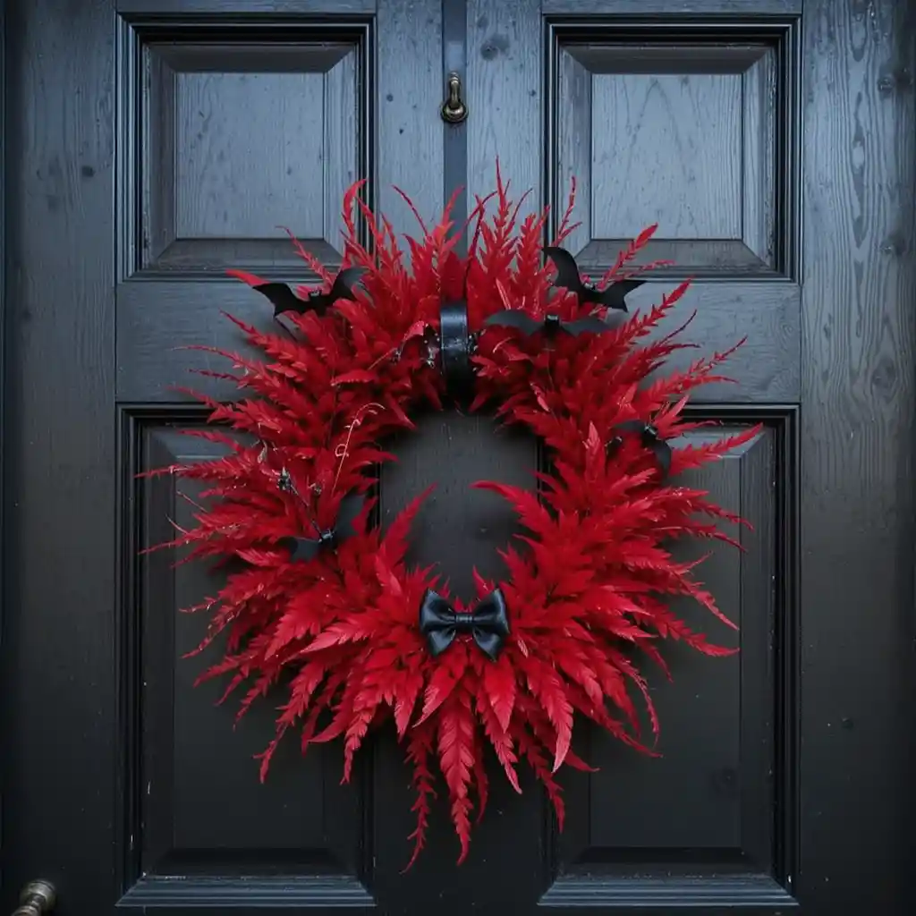 Hang a wreath made of red feathers with touches of black ribbon or faux bats. This unique front door décor will set the tone for your Halloween guests before they even step inside.