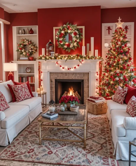 Creating a red and white Christmas living room is a timeless way to bring warmth and holiday charm into your home.