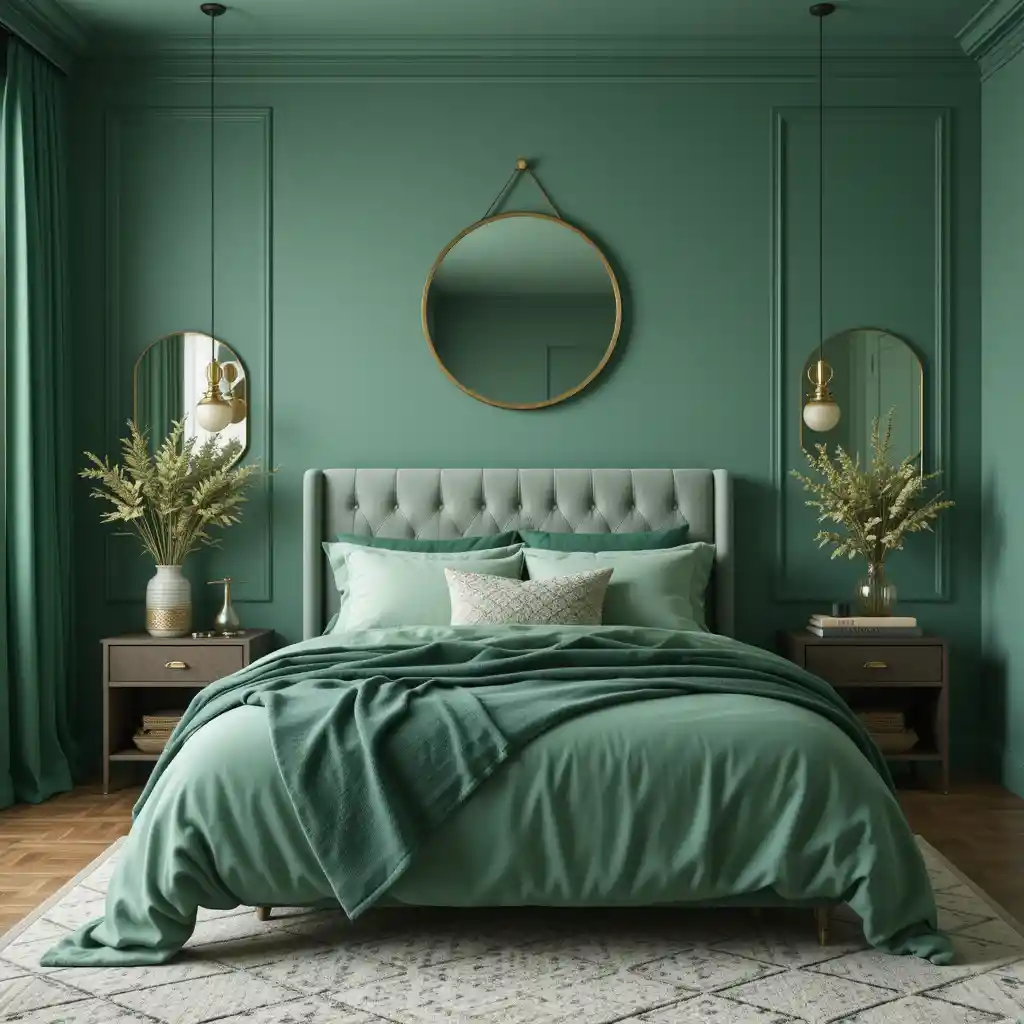 Green pairs beautifully with gold or brass light fixtures, knobs, and mirror frames, adding elegance without overpowering the space. Green Bedroom Ideas