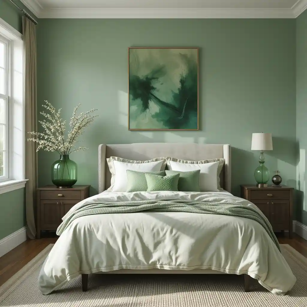 Decorative green glass items—like vases, pendant lights, or candleholders—can add subtle color and reflect natural light beautifully. Green Bedroom Ideas
